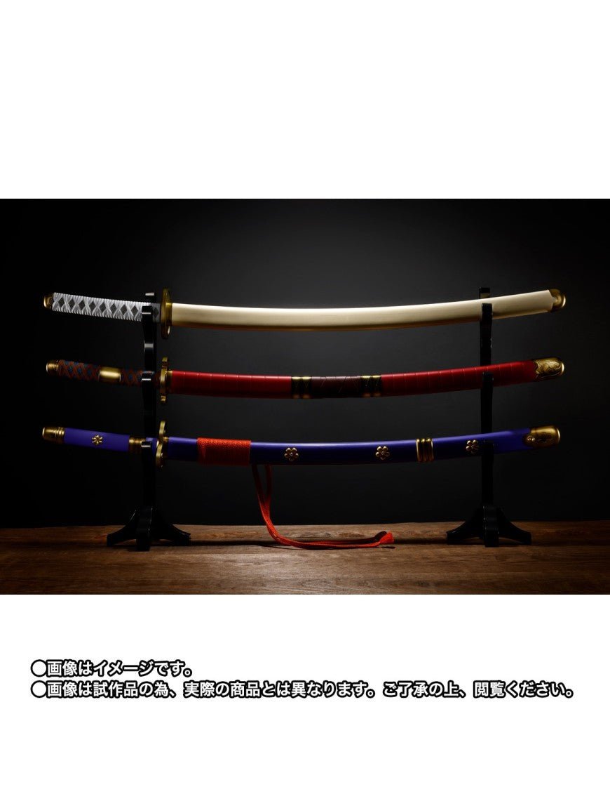 Rivivi l’epica di One Piece con il magnifico set Proplica di Bandai dedicato a Roronoa Zoro e alle sue tre leggendarie katana: Wado Ichimonji, Sandai Kitetsu ed Enma. Realizzate con estrema cura in ABS e PVC, ciascuna spada misura 95 cm ed è accompagnata da accessori e foderi per un’esposizione spettacolare.