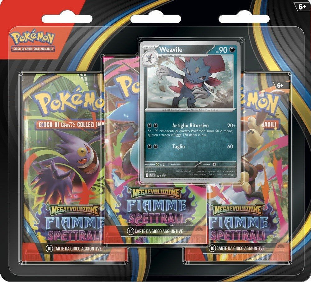 Pokémon Megaevoluzione – Fiamme Spettrali 3 Pack Blister Weavile (ITA)